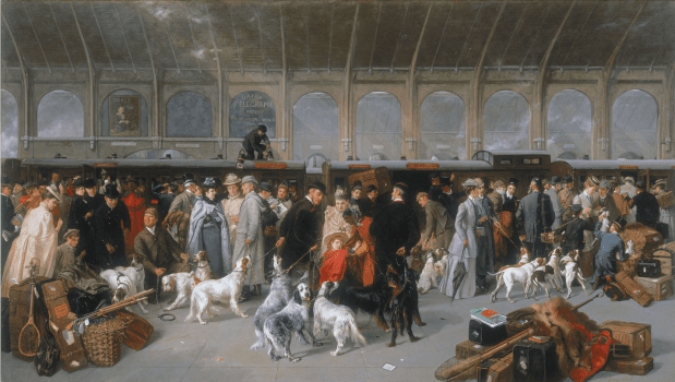 Figure 5 shows a painting by George Earl titled “Going North” from 1893. It depicts a busy scene in London’s King’s Cross station. However, in the very middle, dressed in red, you can see an Indian Ayah caring for a British girl.